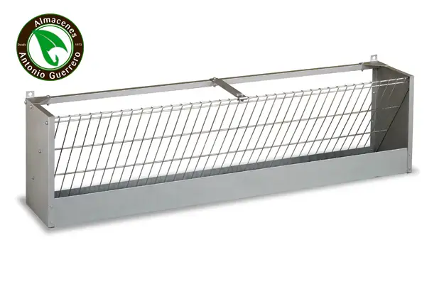 Forrajera de chapa galvanizada para la alimentación de ovejas o cabras que tiene un sistema de montaje en pared sin el panel trasero. Con bandeja colectora para evitar desperdicios. El comedero se puede utilizar con éxito para alimentar ovejas u otros tipos de rumiantes en granjas u hogares.