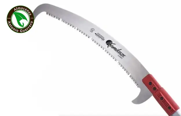 - Diseño Especializado: El diseño en forma de gancho de la hoja permite un agarre seguro en la rama, facilitando el corte incluso en las zonas más difíciles de alcanzar.