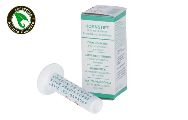 Se utiliza para descornar terneros. Masajear intensamente la zona donde se encuentran los cuernos una sola vez de 1 a 2 minutos. Aplicar a la edad de 1 a 3 semanas cuando los pequeños cuernos son palpables. El tratamiento evita el crecimiento de los cuernos. Con un lápiz cáustico pueden ser tratados más terneros. Cada lápiz contiene 7 g de hidróxido de potasio.