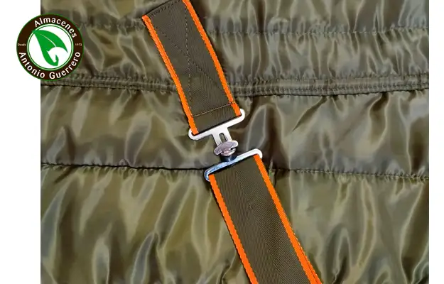 Cinchuelo cruzado y cordón ajustable interior para adaptarla al caballo, proporcionando más calidez y así evitar que le entre corrientes de aire.